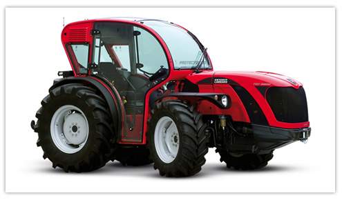 Le tracteur Carraro TGF se décline en 2 versions : la version 9800 avec 87 ch, 4 cylindres turbo, 3300 cc, à masses contrarotatives avec système à injection et EGR à contrôle électronique, et la version 10400 avec 96 ch et intercooler. La ligne très basse et élancée, grâce aux diamètres des roues différents, permet à ce tracteur de se déplacer avec aisance entre les rangs étroits et les arbres fruitiers. Le diamètre plus réduit des roues arrière permet un braquage précis et très étroit. Puissant mais compact, le tracteur Carraro TGF est équipé du Châssis intégral oscillant ACTIO™ et de nombreuses combinaisons de pneumatiques, proposant des versions toujours plus personnalisées. Le TGF est disponible avec la cabine Starlight ou bien la cabine pressurisée Protector 100, le relevage avant et 5 prises hydrauliques.