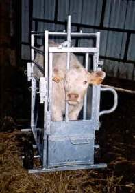 La cage de contention pour veaux de la société Pasdelou Galva permettrait à une seule personne d'écorner les veaux en toute sécurité.