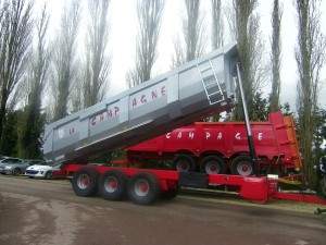 La remorque agricole "La Campagne BRC 32 A 40" équipée de freins pneumatiques peut rouler à 40 km/h. Une homolgation délivrée pour trois dimensions de pneumatiques afin de ne pas dépasser le gabarit hors-tout de 2,55 m: