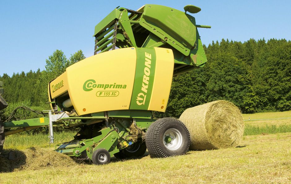 Les presses Krone Comprima F 155 et F 155 XC sont dotées de chambre semi-variable. Ce qui en fait les seules et unique presses à balles rondes du marché à travailler selon le principe de la chambre fixe et sont capables de presser des balles de différents diamètres de 1,25 m à 1,50 m.
