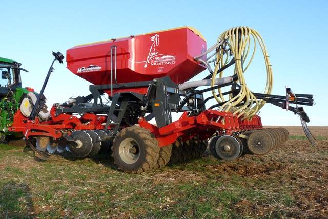 Le semoir rapide Mustang d’Hatzenbichler possède deux rangées de disques crénelés de 540 mm, montés sur paliers étanches. Selon le constructeur, ces deux rangées de disques sont capables de préparer un lit de semence que ce soit en conditions de semis direct, sur chaumes, ou en semis simplifié ou encore sur labour. Les éléments semeurs sont à double disque et sont montés sur parallélogramme. Ils disposent d'une roue de terrage individuelle qui garantirait une profondeur de semis identique sur toute la largeur de l'outil. De série, des racloirs en plastique dur munis de bords en carbure maintiendraient propre les éléments semeurs. Quatre distributeurs hydrauliques double effet sont nécessaires au fonctionnement du semoir rapide Mustang. Un seul d'entre eux est utilisé lors de la mise en terre des disques crénelés et de la rampe de semis. Ce système garantirait un confort d'utilisation maximum au chauffeur et éliminerait tous les risques d'erreur de manipulation. Sur le même principe, lorsque la rampe de semis est levée, le peigne arrière dispose d'un grand dégagement par rapport au sol, ce qui empêche d'accrocher les dents du peigne lors des manoeuvres.