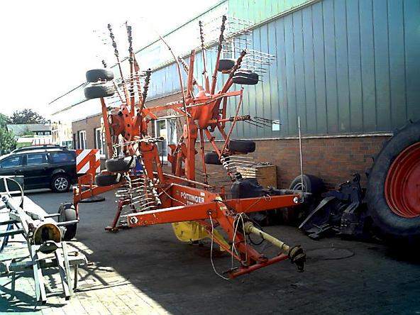 Le Pöttinger Top 660 est un andaineur double rotors avec andain central. La largeur de travail va de 5,80m à 7m.