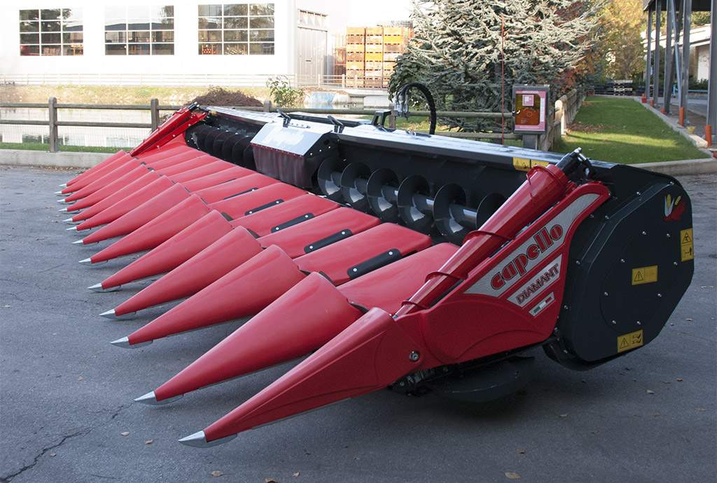 Le cueilleurs à maïs Diamant de Capello existent en version fixe (2 à 18 rangs) et repliable (4 à 16 rangs).