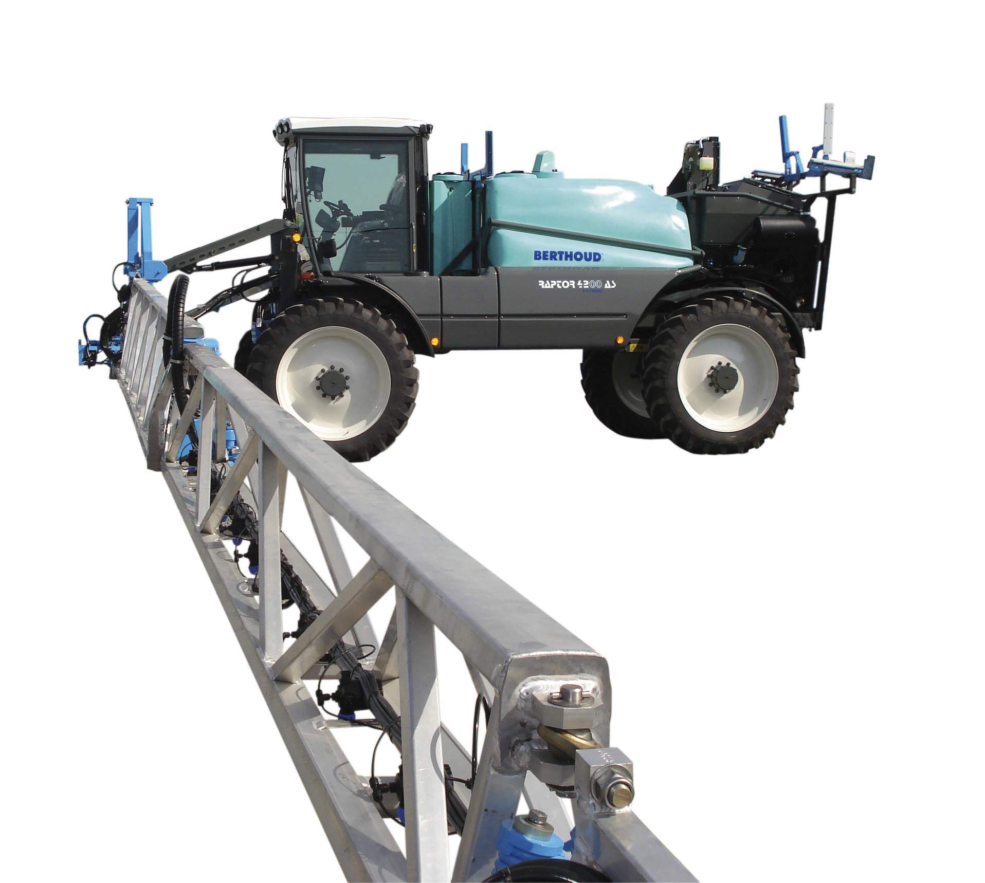 L'automoteur de pulvérisation Berthoud Raptor AS est disponible en 4200 et 5200 litres avec des rampes de 36 à 42 mètres. Sa vitesse maximale est de 40km/h.