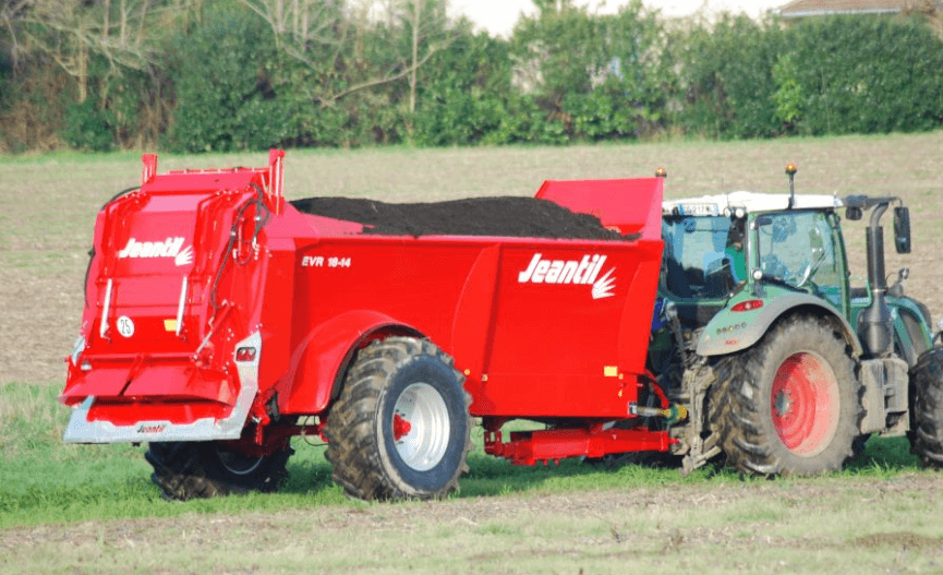 Le dispositif d'épandage EPAN 6 de Jeantil est conçu pour épandre sur des grandes largeurs d'épandage, de 12 à 24 m, de 2 à 30 t/ha.