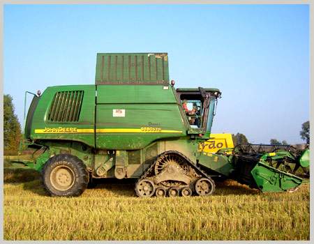 Sa grande surface d'appui permet de réduire nettement le compactage du terrain, de respecter les sols, et d'accroitre sa stabilité sur terrains difficiles, assurant au grand confort et une précision de conduite durant la récolte.
