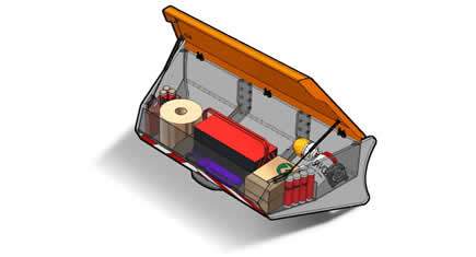 La société Noremat a présenté au Sima 2011 un coffre en guise de contrepoids (poids de 300 kg). Ce coffre a une ouverture par le haut. Les différents cloisonnements intérieurs permettent d'y ranger des accessoires, outils, bidons, .... Il est muni d'une fermeture à clé.