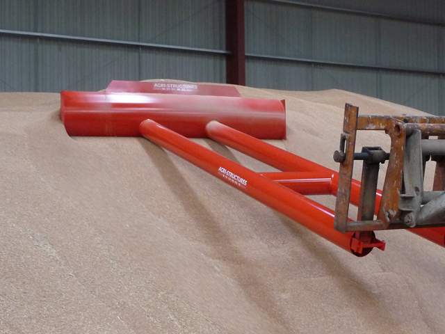 La Lame "Réhausse Tas" de la firme Agri-Structures permet de gagner en capacité de stockage en remontant les tas de grains, engrais, etc…