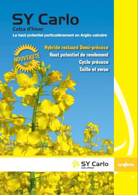 Caractéristiques agronomiques de la variété de colza SY Carlo selon Syngenta seeds: