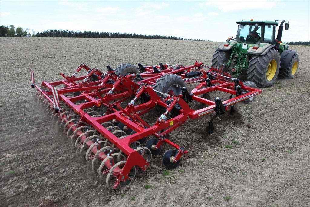 Avec un interrang de 28 cm, le mélange des résidus serait intensif et efficace, l'émiettement de la terre assuré. Le sol serait respecté car l'angle d'attaque de 35° permet de travailler par soulèvement sans le presser d'après le constructeur allemand.