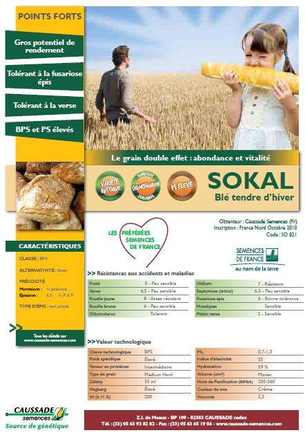 Caussade Semences lance la variété de blé tendre d'hiver Sokal en 2011.