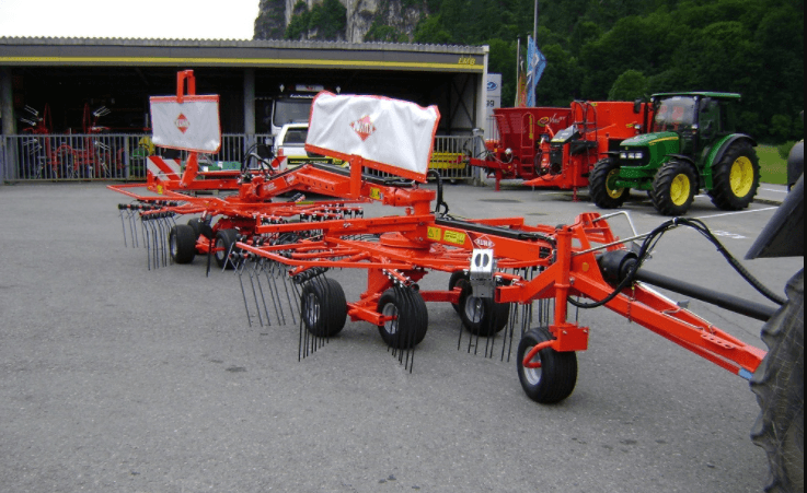 largeur de travail : 6.5 m nombre de rotors : 2 nombre de bras/ rotor : 10 largeur au transport : 3 m poids : 1530 kg