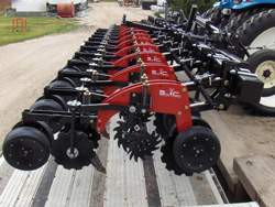 Les éléments du Strip Cat de la firme Twin Diamond Industries sont montés par brides sur le châssis pour permettre de modifier l'inter-rang. Le disque ouvreur peut être droit (cranté ou lisse) ou gaufré