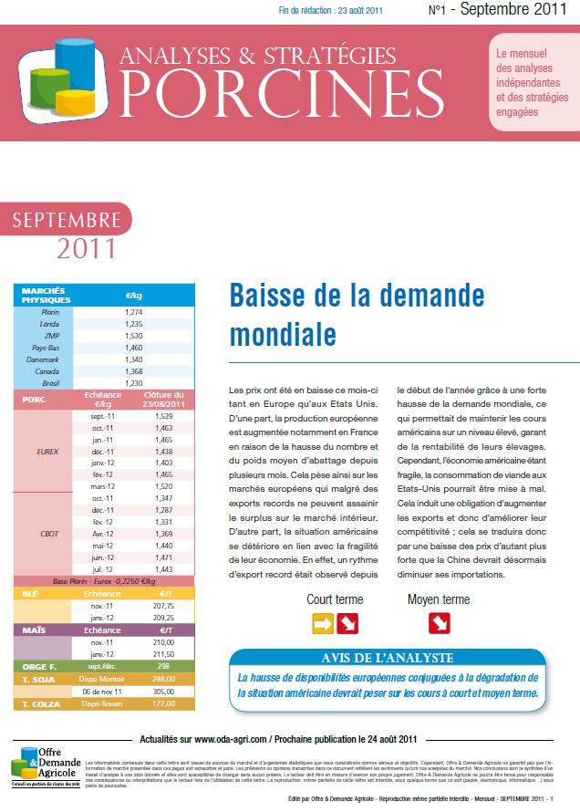 Avec Analyse & Stratégies Porcines, Offre & Demande Agricole entend apporter en septembre 2011 un nouvel outil aux opérateurs de la filière pour comprendre le marché du porc et gagner en sérénité, dans un monde de volatilité.