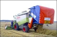 Par le récupérateur de menues-pailles Thiérart, la menue paille est récupérée en sortie de la moissonneuse batteuse dans une auge. La matière est ensuite répartie entre deux vis verticales qui la transfèrent dans une trémie montée à l'arrière de la machine. La matière ainsi récupérée est vidée en bout de champ par basculement de cette trémie.