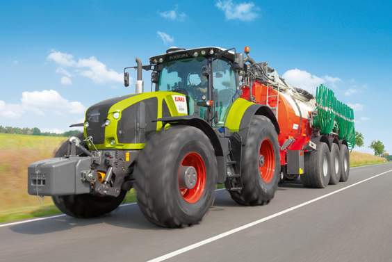 Le tracteur Claas Axion 920 a un empattement de 3,15 m. Son poids à vide est de 13 tonnes (répartition avant/arrière de 44%/56%). Ses pneus font 2,15 m de diamètre à l'arrière et de 1,70 m à l'avant.