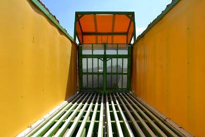 La caisse forme un ensemble parfaitement étanche. La paroi frontale est dotée de bandes latérales de raclage qui permettent une vidange totale sans débordement de la matière en avant ni sur les côtés. Joskin met en avant la grande régularité du déchargement qui ne compresse en aucun cas la matière: la paroi mobile ne fait qu'accompagner la matière, sans la pousser.