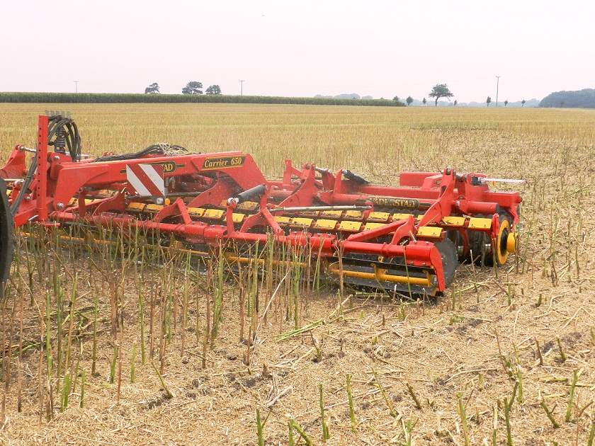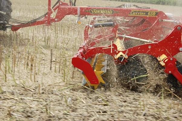 Plusieurs essais ont en effet été réalisés cet automne en France notamment à Boigneville (91). Une moutarde de 1m à 1,20 m de hauteur a été roulée avec un Carrier 650 rouleau caoutchouc équipé d’un Crosscutter. Ce tout premier essai montre un excellent travail avec des disques réglés à une profondeur de travail de 1 à 2 cm seulement. L’efficacité est d’autant plus grande que la vitesse est élevée (15 km/h), la demande en puissance étant modérée. Le 180 cv utilisé lors de l’essai emmenait en effet très facilement le Carrier 650. Le Crosscutter est également adapté à l’émiettement des cannes de colza, chaumes de céréales, tournesol ou maïs pour accélérer leur décomposition.