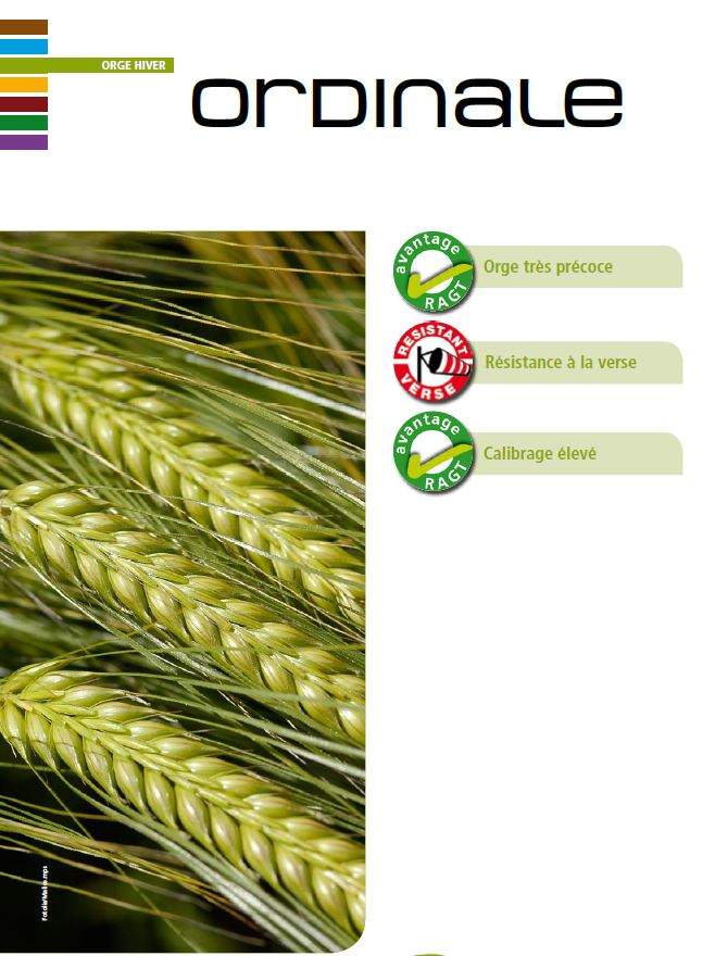 Ordinale de la firme "RAGT Semences" est une orge 2 rangs fourragère.