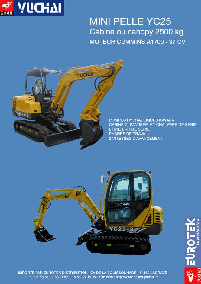 Caractéristiques de la mini pelle Yuchai YC25 (2500 kg):