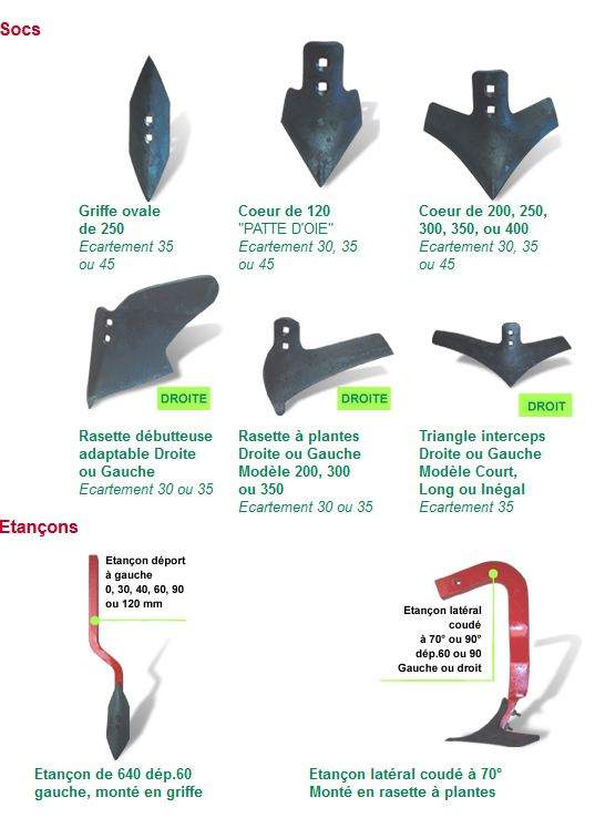 Dans l’atelier forge des Ets Boisselet, les forgerons façonnent toute une gamme de "Socs" de griffage et binage, ainsi que des "étançons" (supports de socs) de différents modèles (hauteur, déport.