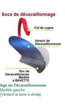 Afin de rendre cette intervention plus commode, les Ets Boisselet ont étudié des socs de décavaillonnage particuliers (soc à bavette) et proposent différents cols de cygne et versoirs en fonction des largeurs de plantations et des types de terrain.