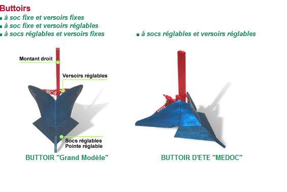 Les Ets Boisselet ont façonné différentes matrices permettant de forger des socs et des versoirs adaptés à chaque type de largeurs de plantations et de terrain.