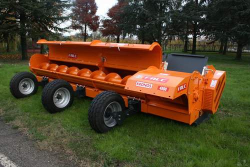 Le broyeur Falc "Kronos 4800" a une vis sans fin pour la mise en randg du produit broyé. Sa largeur de travail est de 4,80 m.