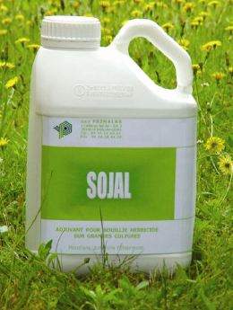 « Sojal » de la société « Primalab » est un adjuvant pour bouillie herbicide à base de Lécithine de Soja sans OGM (il contient 400g/L de lécithine de soja).