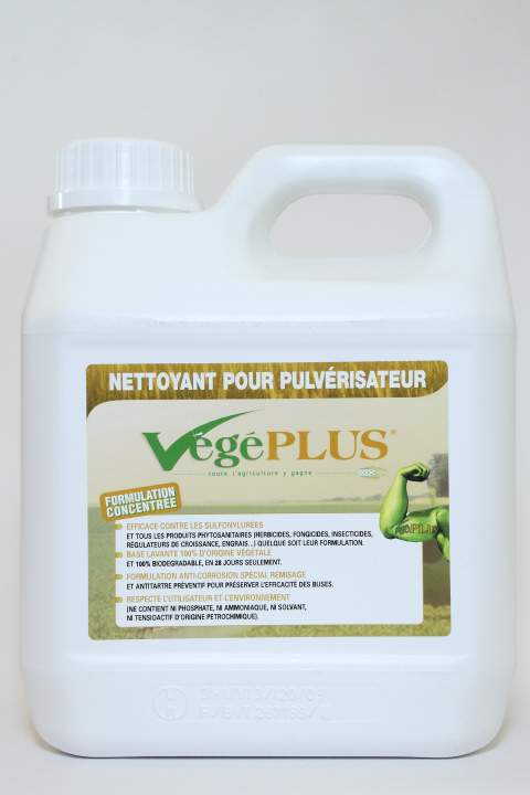 « Vegeplus » de la firme « Bio Attitude » est un nettoyant de pulvérisateur agricole. Il s'utilise à la dose de 0,2% et permet l'élimination des traces de sulfonylurées, ainsi que tous les produits phytosanitaires (herbicides, fongicides, insecticides, régulateurs de croissance, engrais..).