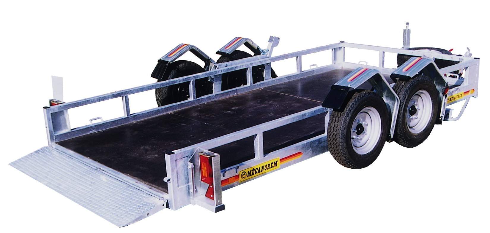 Elles ont la particularité d'être équipées d'essieux à bras pivotants ce qui permet au plateau de reposer à terre en position de chargement. Avec le hayon arrière l'angle de chargement n'est plus que de 5° environ. Toutes les pièces métalliques sont galvanisées à chaud et le plancher est réalisé en contre-plaqué.