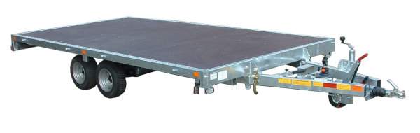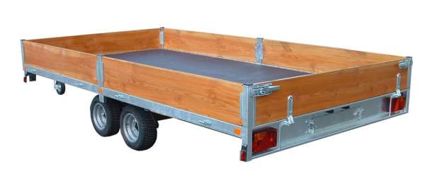 Plateaux professionnels grandes dimensions : 4.00 x 2.15 m utiles. Plateau "nu" transformable et adaptable selon les besoins avec ridelles aluminium ou bois, en porte véhicule avec hayon ou rampes de montée, etc...