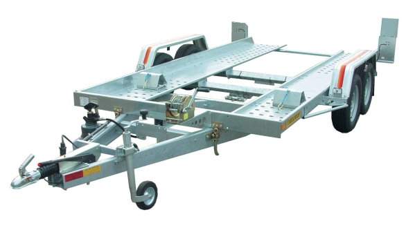 Ces remorques sont réalisées à partir d’éléments standards fabriqués en série. L’assemblage est réalisé par boulonnage. Elles sont constituées de deux rails gouttières, d’une flèche en V aux normes européennes. Elles sont équipées en série, d’une roue jockey, d’un basculement hydraulique, d’un système de freinage à inertie avec recul automatique, d’un garde boue escamotable pour facilité l’ouverture des portes des automobiles, de deux cales de roues, d’un éclairage aux nouvelles normes européennes.