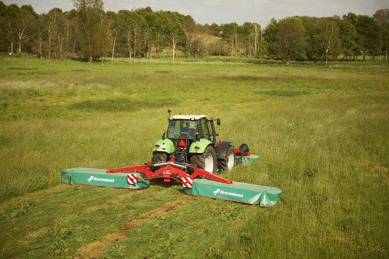 Cette nouvelle faucheuse bénéficie de la nouvelle génération de lamier Kverneland. Cette combinaison est idéale selon le constructeur pour les tracteurs de moyennes puissances ; seuls 110 ch sont nécessaires selon le constructeur pour entrainer cette combinaison d’un poids de 1600 kg. Chaque unité de fauche est suspendue au centre permettant d’avoir une répartition uniforme du poids de part et d’autre de la faucheuse. La hauteur au transport est inférieure à 4 m pour une largeur inférieur à 3,00 m.