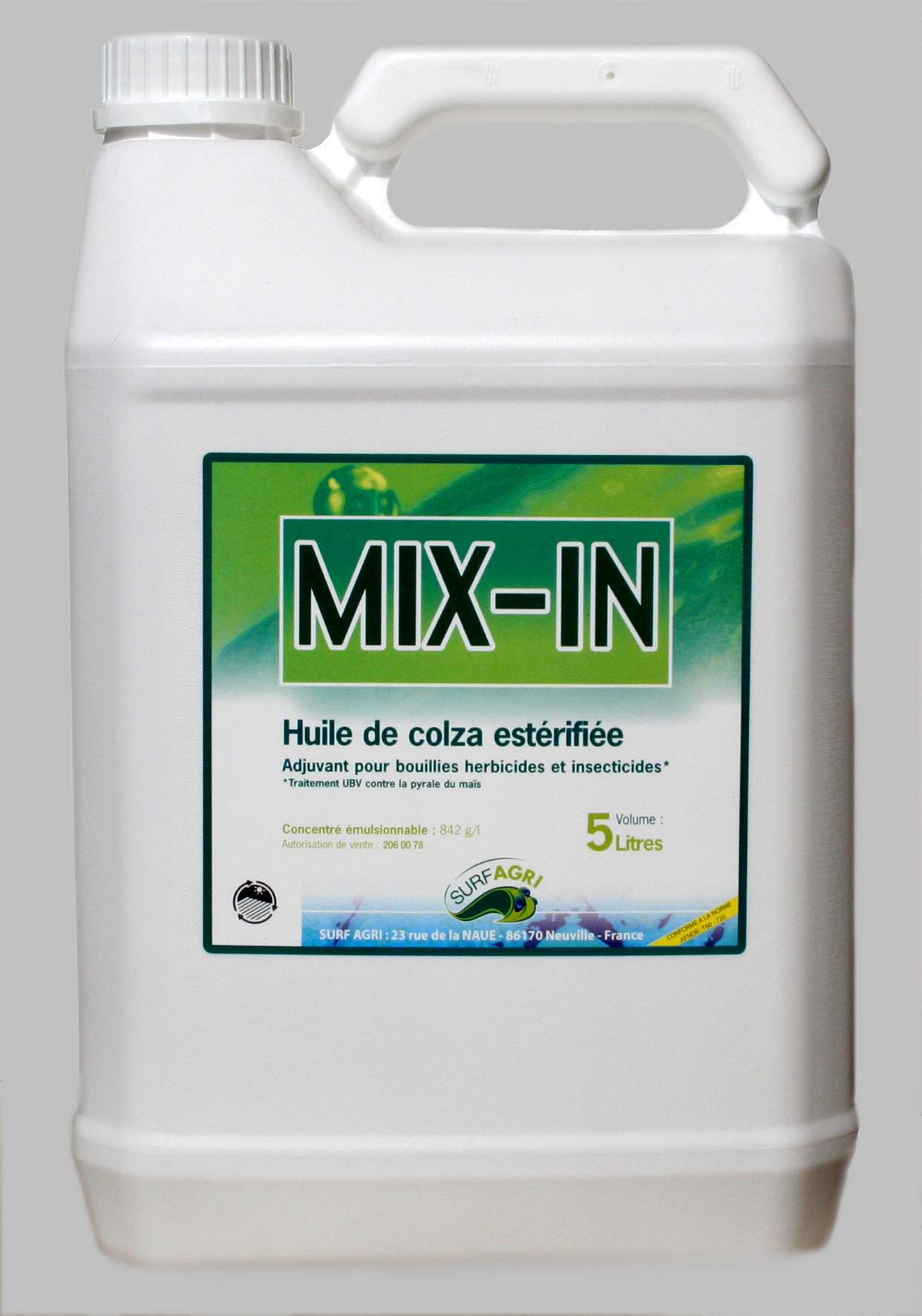 "MIX IN" de la marque Jouffray-Drillaud est un adjuvant pour bouillie herbicide à base d'ester-methylique de colza.