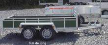 Utilisation : Remorque 2 essieux freinée idéale pour transport de matériaux, bois, déchets, tondeuse, quad, moto ...