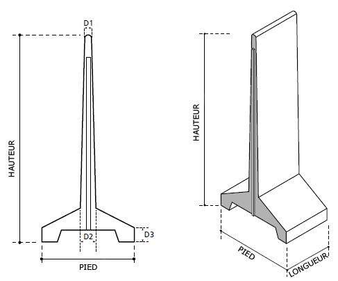 On distingue deux modèles : le CTGRA400/100 de 4 m de hauteur, 1 m de largeur, 1,80 m de pied et le CTGRA300/125 de 3 m de hauteur, 1,25 m de largeur et 1,40 de pied.