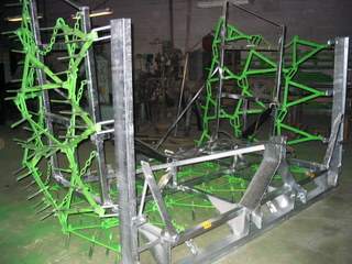 Les herses de prairie Roger sont à châssis repliable pour un encombrement minimum sur la route. Les dents couteaux sont réversibles, en acier dur, d’une longueur de 155 mm. Il suffit de les retourner pour avoir un nouveau mordant.