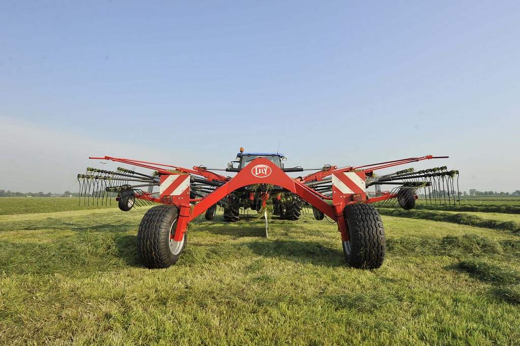Avec sa largeur de travail la plus étroite et ses deux rotors 10 bras d’un diamètre de 3,20 m, le nouvel Hibiscus 715 CD est le cadet de la gamme Lely Hibiscus. A l’instar du 745 CD Vario, cet andaineur se distingue par ses dimensions compactes et sa largeur de transport étroite, des caractéristiques qui en font selon Lely une machine facile à manoeuvrer sur les routes et les chemins étroits. Principale différence entre ces deux modèles : le 745 CD Vario est doté d’un système de réglage hydraulique de la largeur de travail, ainsi que d’un bras porte-dents supplémentaire par rotor.