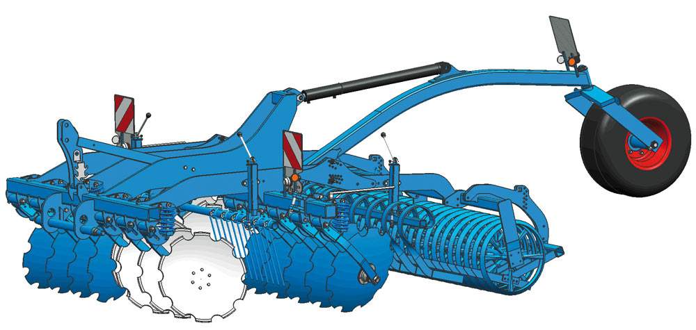 Le déchaumeur à disques indépendants Lemken Rubin 12 dispose d'une roue arrière pour le transport et pour les manoeuvres en bout de champs.