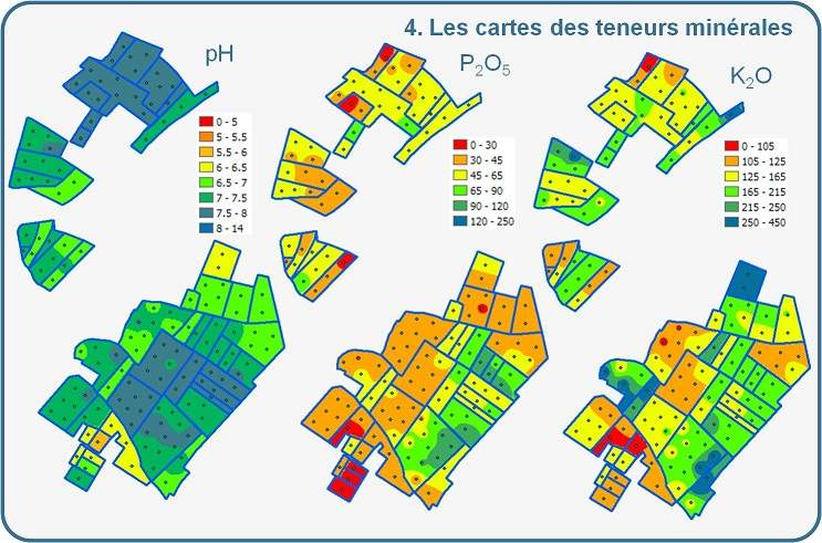 - Défisol fournit un document reprenant tous les résultats permettant à l’agriculteur de mettre en évidence l’hétérogénéité de la richesse de ses sols,
