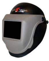 La cagoule Albatross de la firme Weltek combine une large visière incolore de meulage avec une cagoule de soudage rabattable.