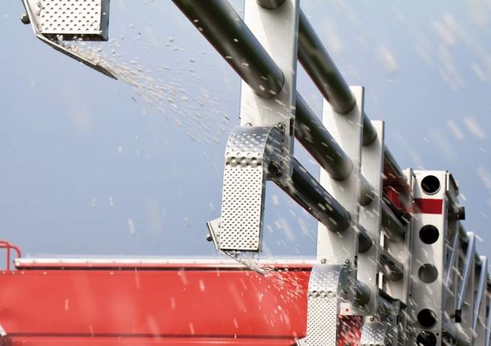 L’autonomie de l’épandeur Kuhn AGT 6036 est de 6300 litres. La rampe en inox de 36 m se replie en 3 parties et ne dépasse pas le gabarit de la machine au transport.