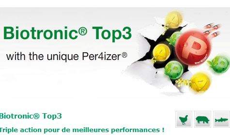 Les élevages de volailles et de porcs doivent avoir des niveaux de production élevés tout en fournissant des produits de haute qualité. Mais les performances de croissance sont compromises par les bactéries. En effet, ces dernières engendrent des pertes énergétiques importantes et ont un impact négatif sur la croissance de l’animal. C’est pourquoi Biomin commercialise « Biotronic Top3 ». Basé sur des ingrédients minutieusement sélectionnés, « Biotronic Top3 » est un produit naturel qui vise une synergie efficace entre 3 ingrédients actifs afin d’optimiser les performances zootechniques des animaux.