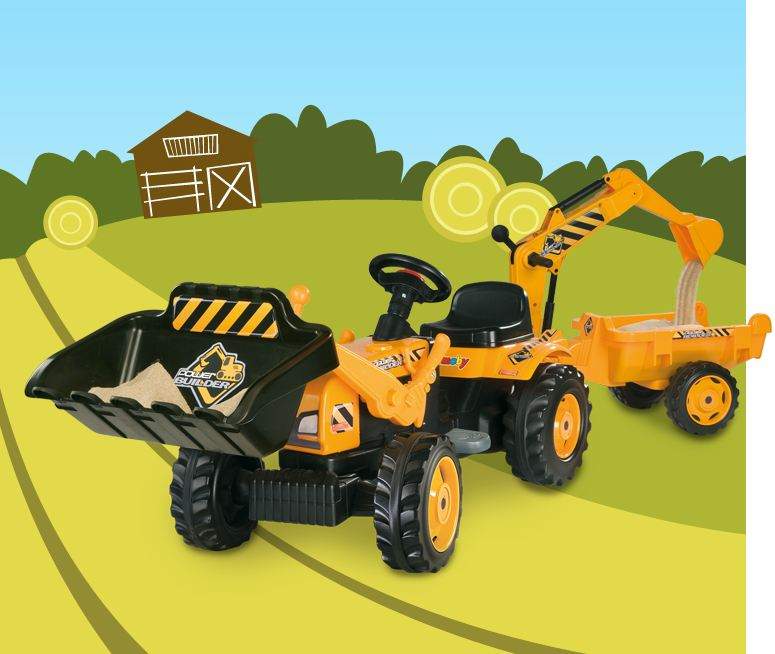 Le tracteur « Builder Max » de la marque Smoby offre une pelle articulée à l'avant et une pelleteuse à l'arrière. La pelleteuse est ergonomique et fonctionnelle avec vérin et ressort d'aide à l'utilisation.