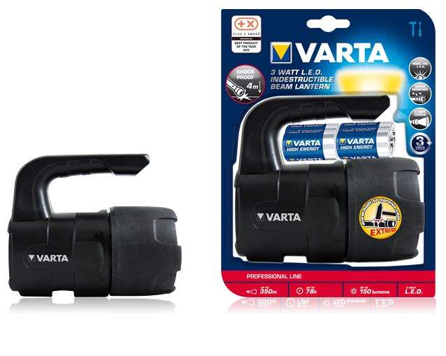 Le fabricant Varta propose depuis le printemps 2012 toute une gamme de lampes torches hyper-résistantes et de forte intensité lumineuse. Avec une portée maximale de 150 mètres et une autonomie atteignant 35 heures (en mode éco avec une portée de 56 m), le modèle Varta Indestructible 1 Watt LED Light 2AA offre par exemple une puissance lumineuse de 100 lumens. En mode économique, la puissance de 18 lumens prolonge la durée de vie des deux piles AA fournies. Ce modèle est garanti trois ans. Comme toute la gamme ou presque.