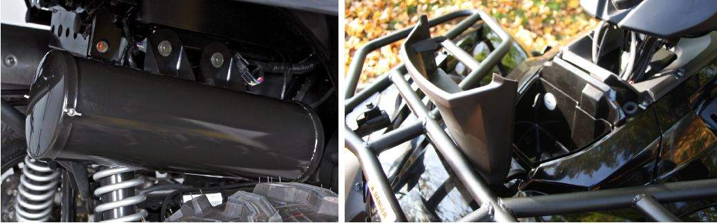 Les espaces de rangement de l’Outback 700 EFI se compose également de 2 rangements : un situé sous le passage de roue arrière droit permettant de stocker par exemple un câble de remorquage et le second situé devant le poste de pilotage permettant de stocker un téléphone portable, le GPS, les papiers du véhicule, une carte ou tout autre outil nécessaire à la navigation et à la communication. De plus, il bénéficie d’un port USB pour recharger le matériel électronique.
