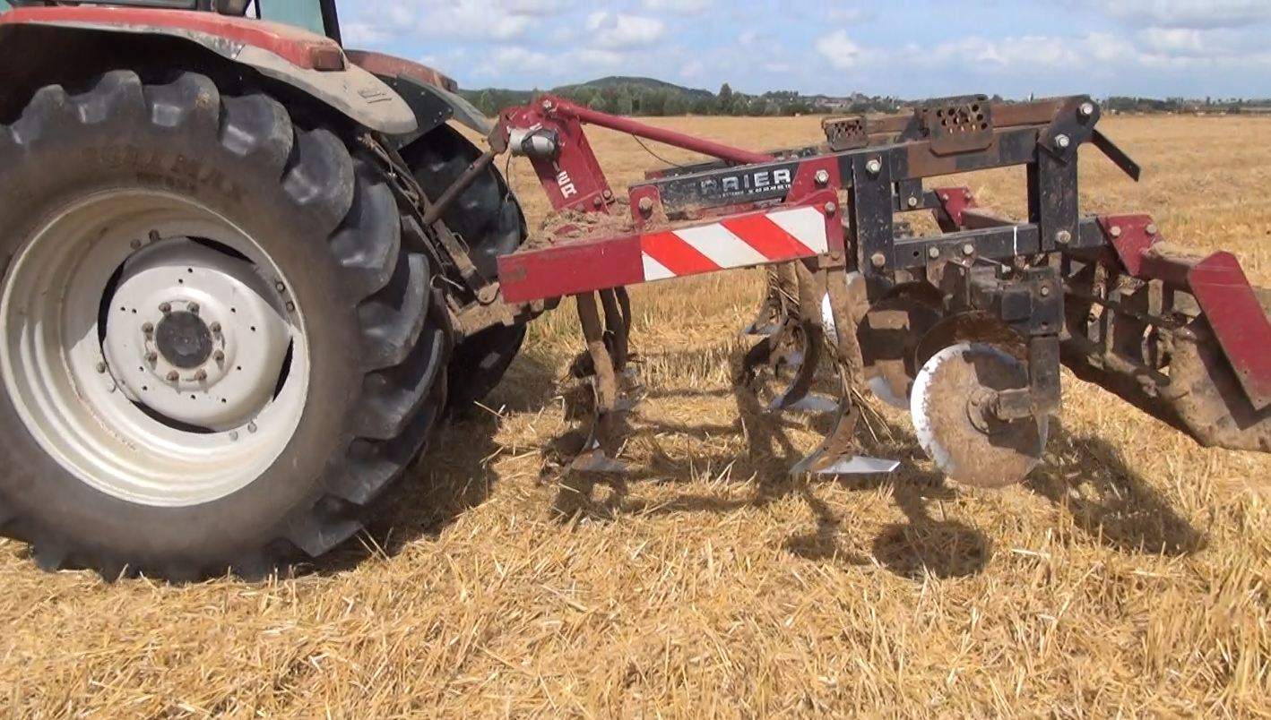 Terrier, constructeur d'outils de travail du sol dans le Nord de la France à Meteren (Flandres), fabrique des déchaumeurs à pattes d'oie avec disques d'égalisation et rouleau de rappui et de contrôle de la profondeur.