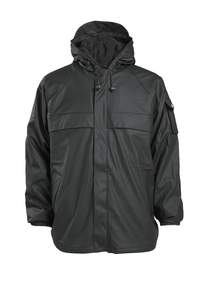 Le Parka de pluie "Turtle" dispose de coutures soudées, 2 poches poitrine à fermeture auto-aggripante, 2 poches plaquées avec fermeture a glissière oblique, 1 poche sur manche gauche avec rabat velcro, 1 poche intérieure. capuche soudée avec visière et cordon de serrage, des poignets élastiqués. Ventilation au dos. Fermeture à glissière sous patte Velcro. Cordon de serrage