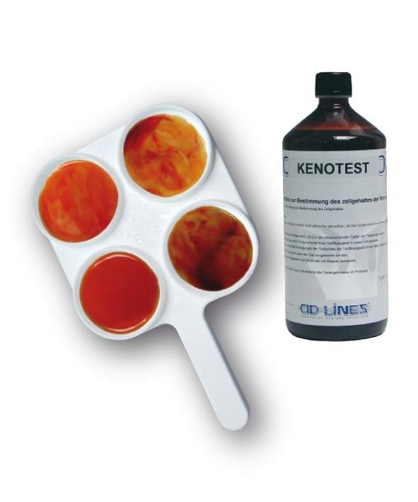 « Kenotest » permet de détecter la présence de cellules somatiques dans le lait. A utiliser avec le plateau de détection. Kenotest est un outil indispensable pour le contrôle et la gestion des mammites au sein de l'élevage.